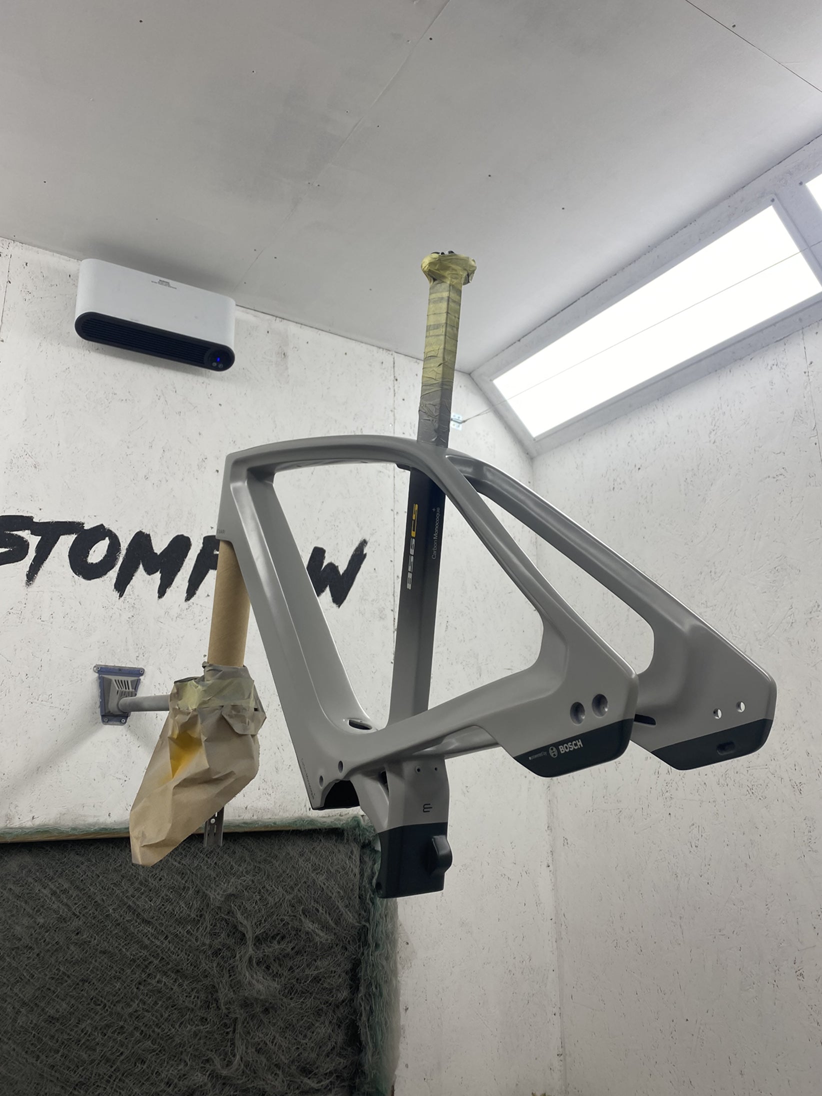 Every surface is considered — frame, fork, carbon fibre components, handlebars, stem, seatpost, and brake calipers are meticulously prepared and finished. Each part is treated individually to achieve a seamless, flawless final aesthetic.